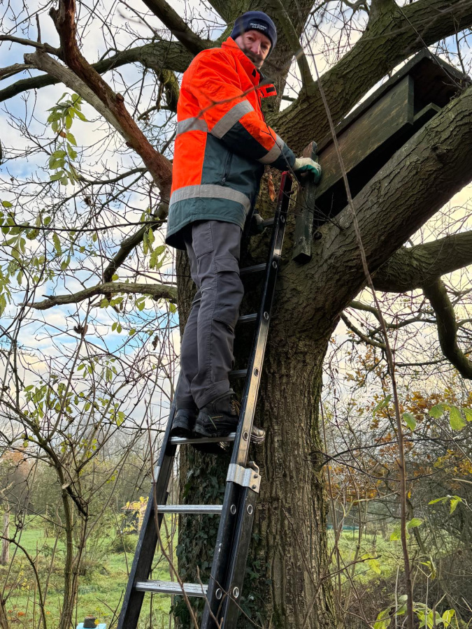 Elk jaar worden de nestkasten gecontroleerd, schoongemaakt en voorzien van een nieuwe strooisellaag.