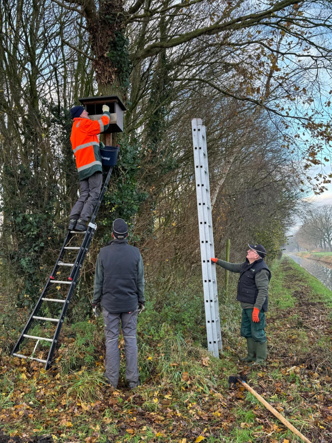 Op onze terreinen hangen nestkasten voor bosuil, steenuil en torenvalk.